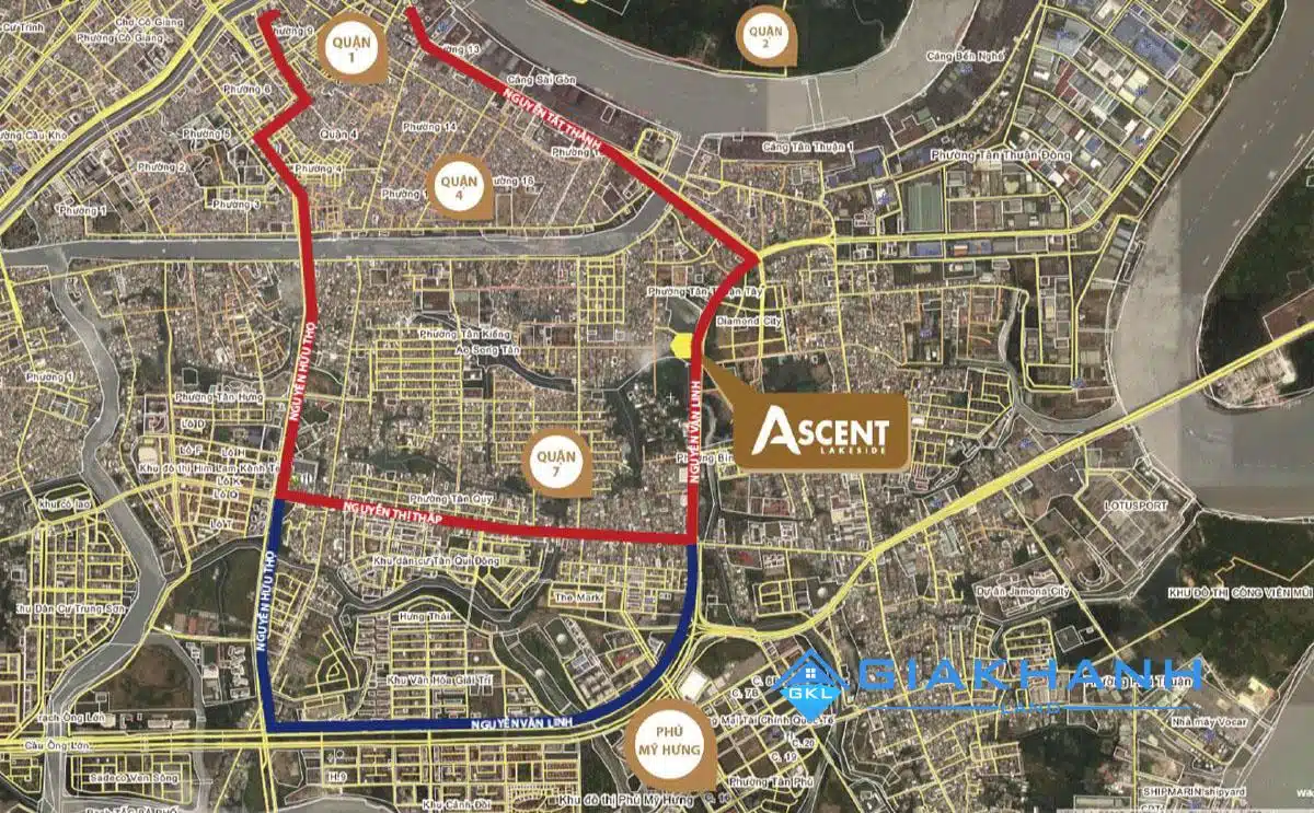Căn hộ Ascent Lakeside sở hữu một vị trí đẹp thuộc mặt tiền đường Nguyễn Văn Linh – một trong những cung đường lớn, kết nối của trung tâm quận 7. Do đó mà dự án được thừa hưởng hệ thống giao thông thuận lợi, kết nối với đường Huỳnh Tấn Phát, Quốc Lộ 1A…mở rộng di chuyển từ dự án đến quận 1,3,4,8,5…hay các tỉnh Bình Chánh, Miền Tây khác ngoại thành.