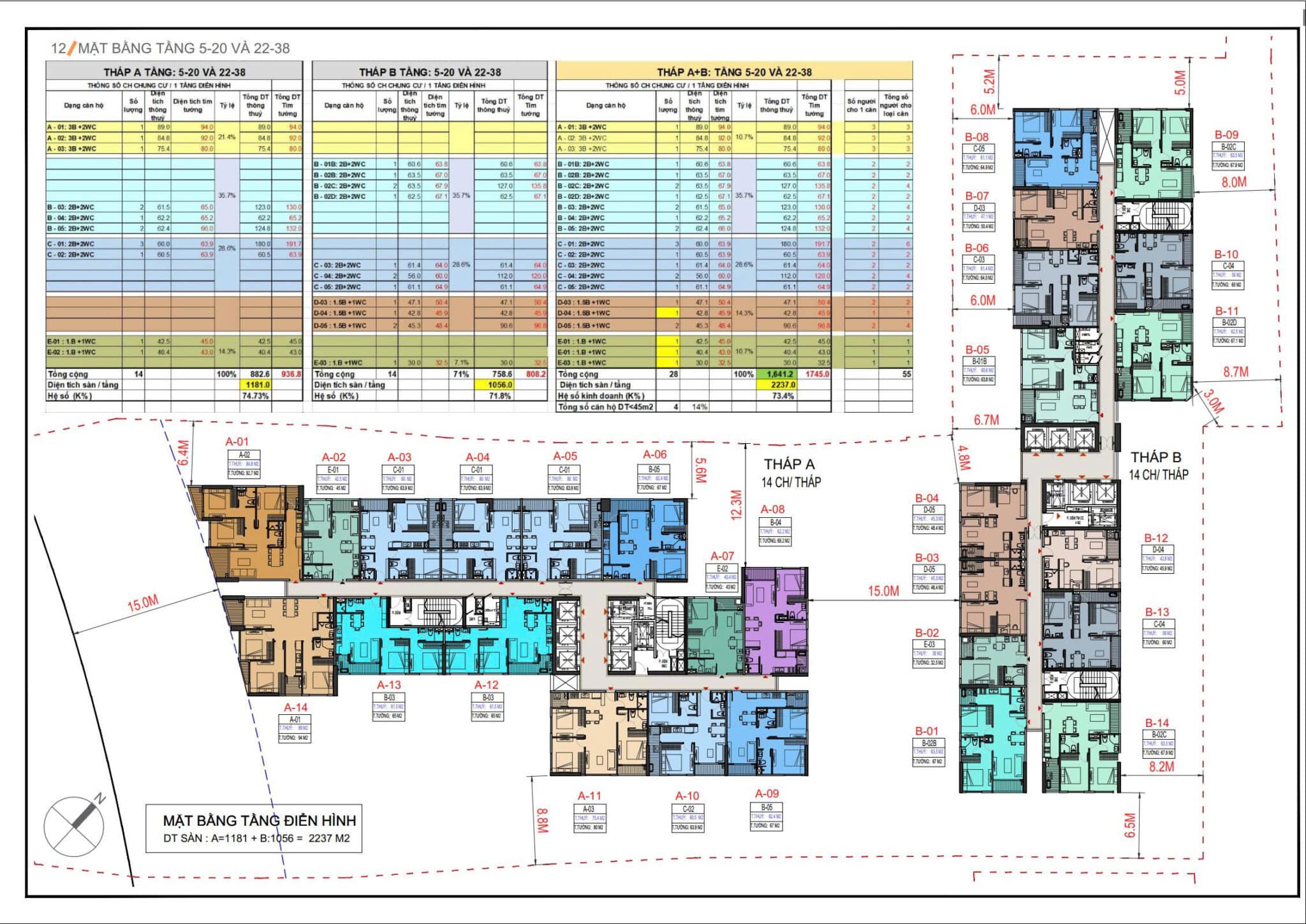 • Tầng 5 – 19, 21 – 39: Khu căn hộ