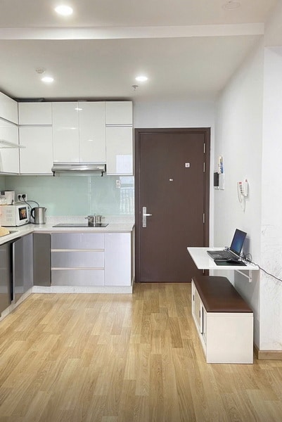 Nội thất đầy đủ, hoàn thiện gọn gàng, người mua có thể dọn vào ở ngay. Phù hợp gia đình trẻ hoặc người làm việc khu Bình Thạnh – Quận 1 cần chỗ ở lâu dài.