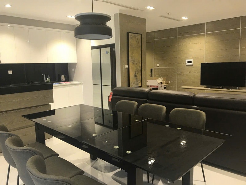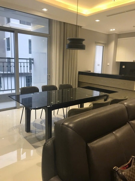 Căn hộ Vinhomes Bình Thạnh có 4 phòng ngủ, 3 nhà tắm, mặt bằng vuông vức. Khu khách và bếp tách biệt, tạo không gian sinh hoạt chung thoáng đãng.