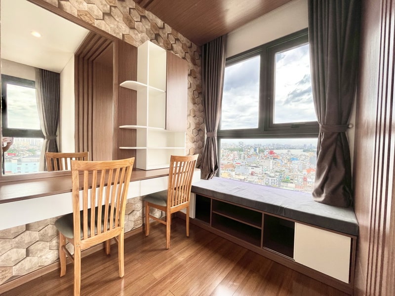 Điểm cộng lớn nhất của căn hộ là view trực diện sông Sài Gòn, nhìn rõ Landmark 81, thoáng mát và ít bị che chắn. Không gian sống yên tĩnh, ánh sáng tự nhiên tốt, phù hợp với nhu cầu nghỉ ngơi và tái tạo năng lượng sau ngày dài.
