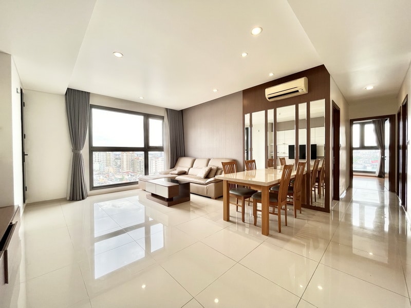 Căn hộ có diện tích 101m², thiết kế 2 phòng ngủ, 2 nhà tắm, không gian sinh hoạt rộng rãi và thông thoáng. Bố cục hợp lý, phòng khách và bếp liên thông giúp tối ưu công năng sử dụng cho gia đình ở lâu dài.