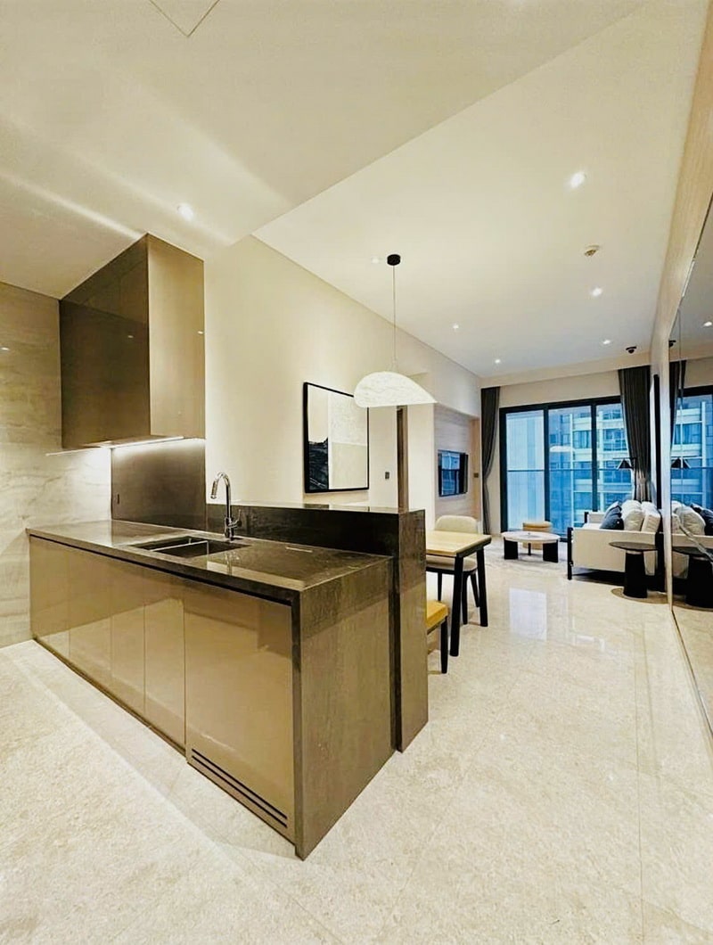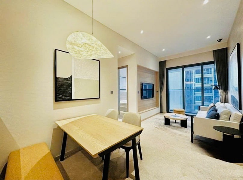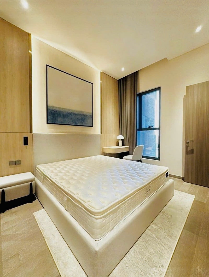 Căn hộ bàn giao full nội thất, phong cách hiện đại, chọn lọc kỹ về vật liệu và màu sắc. Người mua chỉ cần xách vali vào ở, không phát sinh thêm chi phí hoàn thiện.