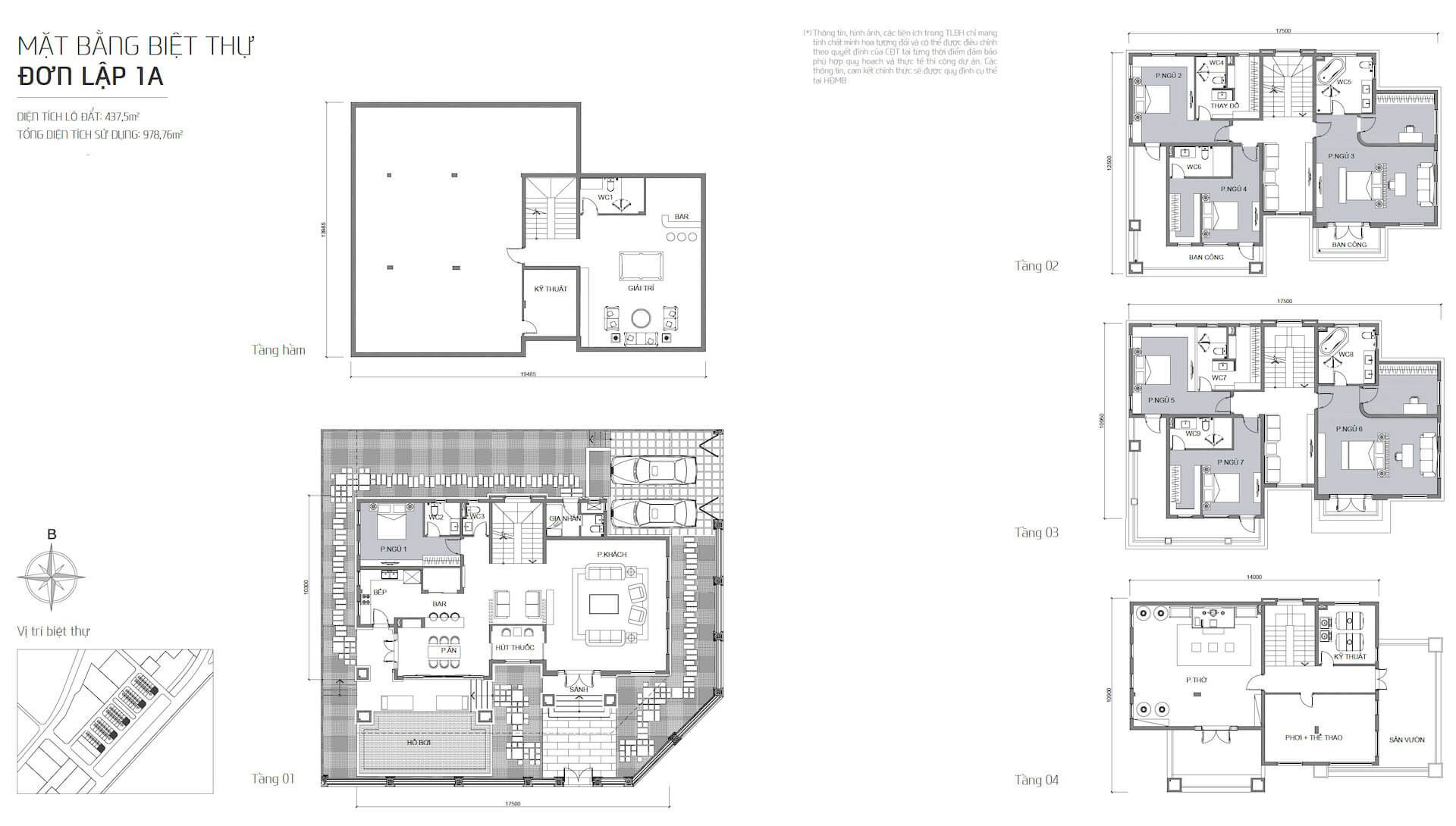 • Biệt thự đơn lập: 20 x 22.5m = 437.5m2