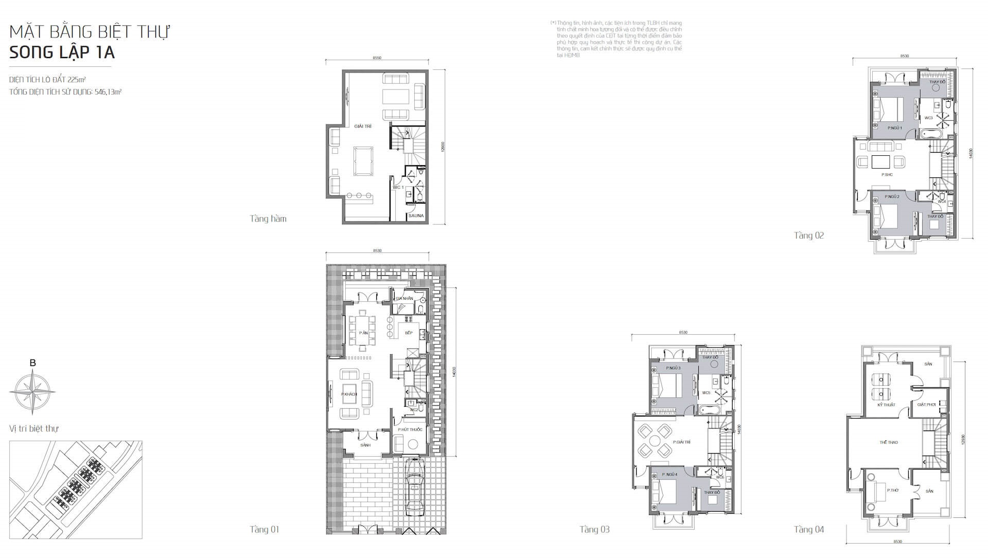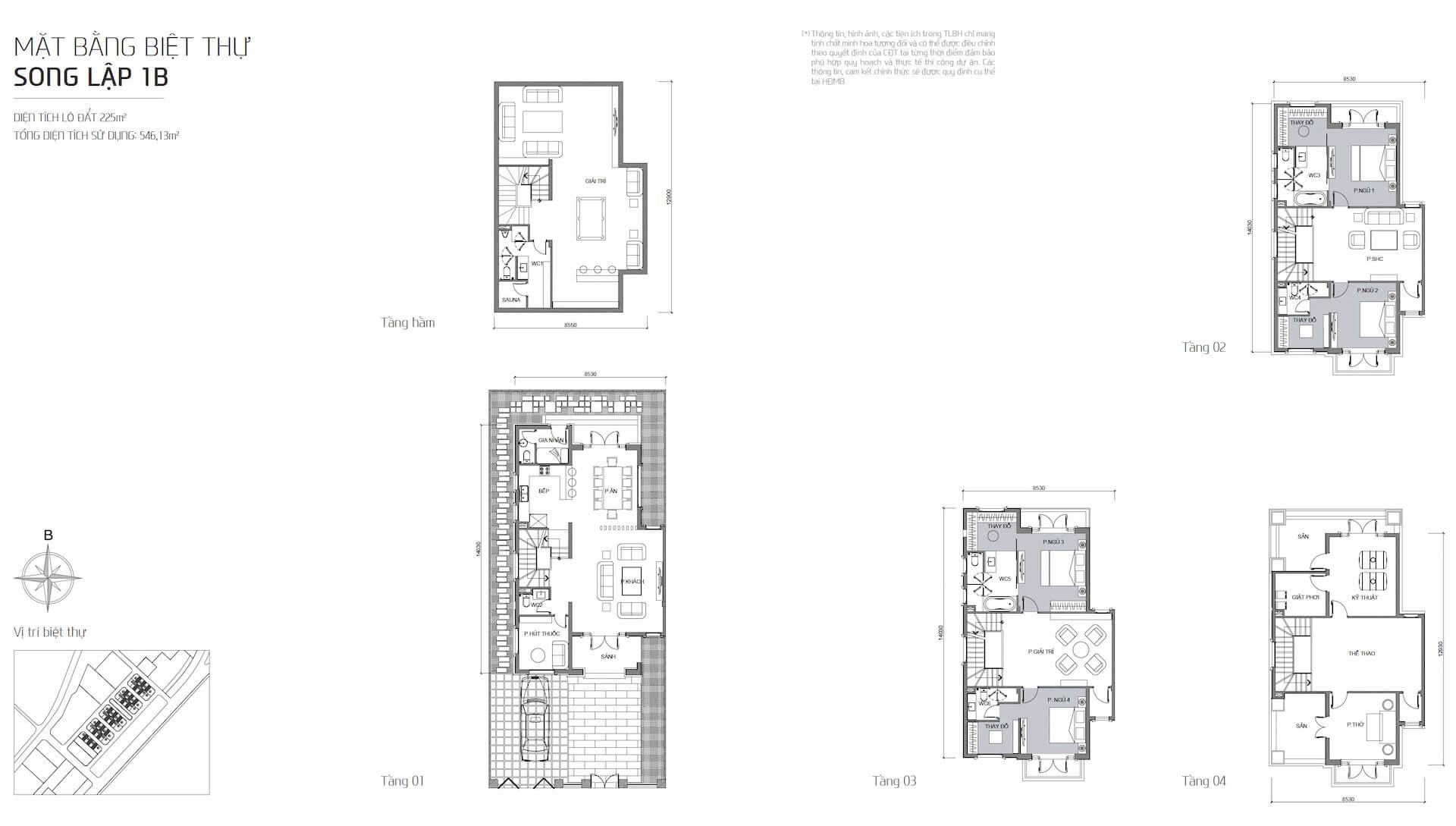 • Công năng: cấu trúc tương đồng với mẫu 1A, gồm khu giải trí, phòng khách, phòng ngủ, bếp, phòng thể thao, phòng thờ, hồ bơi, sân vườn, ban công, phòng kỹ thuật và các khu phụ trợ. Thiết kế chú trọng không gian mở và trải nghiệm sống thư thái.