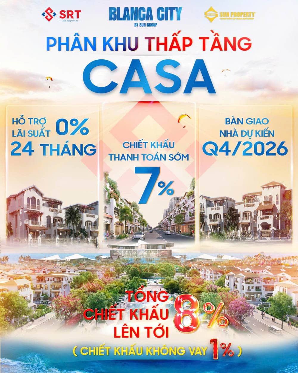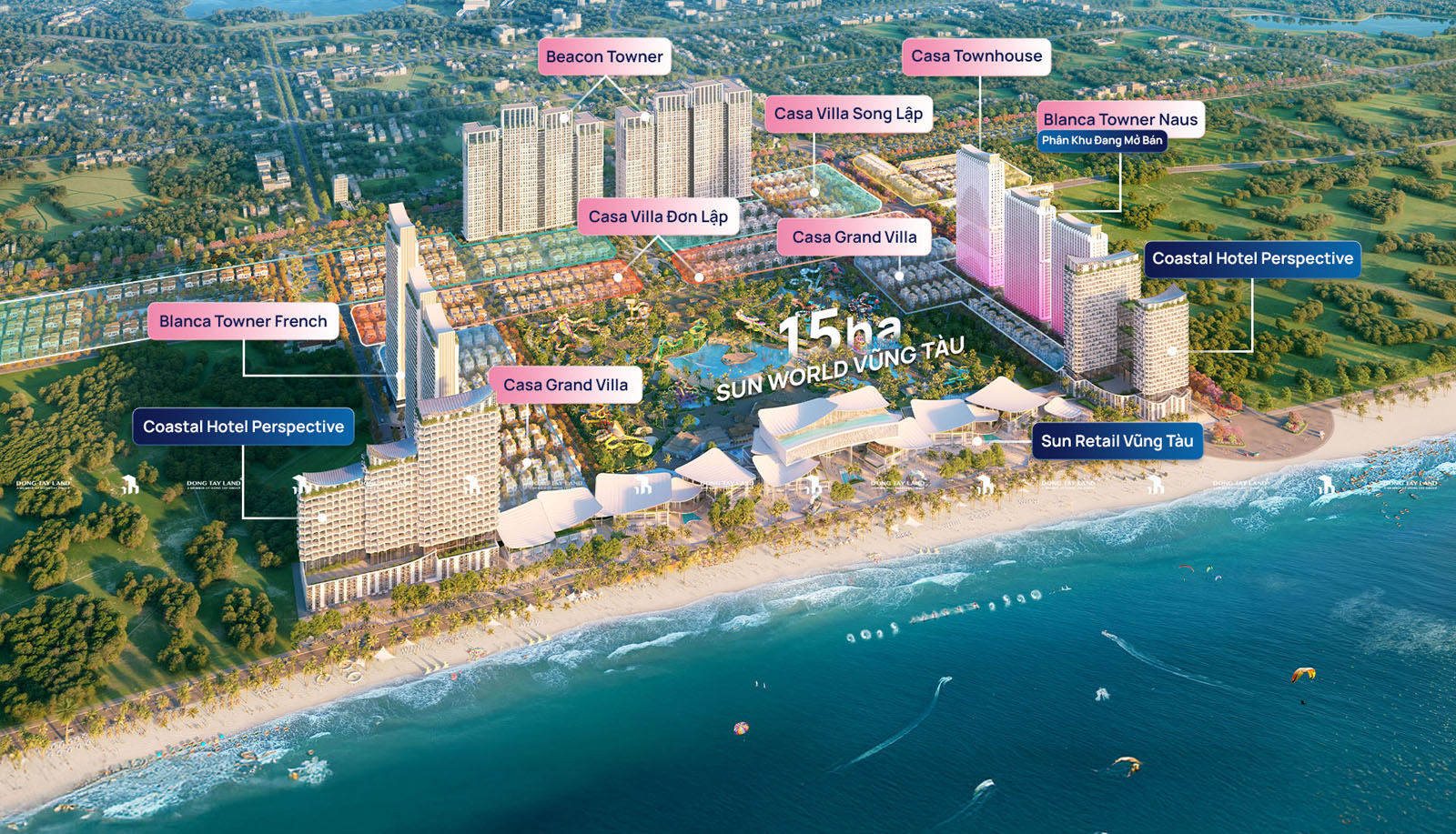 Blanca City Vũng Tàu là siêu đô thị biển 96ha do Sun Group phát triển trên trục đường 3 Tháng 2, TP. Vũng Tàu. Dự án sở hữu hệ sinh thái nghỉ dưỡng – giải trí – đầu tư đẳng cấp, gồm các loại hình: căn hộ, nhà phố, shophouse, biệt thự đơn lập & song lập.