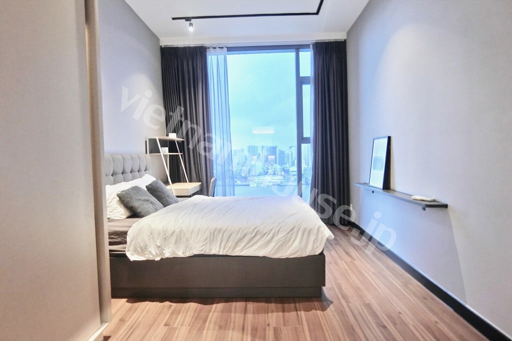 Phòng ngủ được bố trí riêng tư, yên tĩnh với giường ngủ êm ái – mang lại giấc ngủ sâu sau một ngày dài. Không gian sống nơi đây sẽ khiến bạn cảm nhận được sự cân bằng giữa tiện nghi và thư giãn, giữa đô thị sôi động và một tổ ấm yên bình.