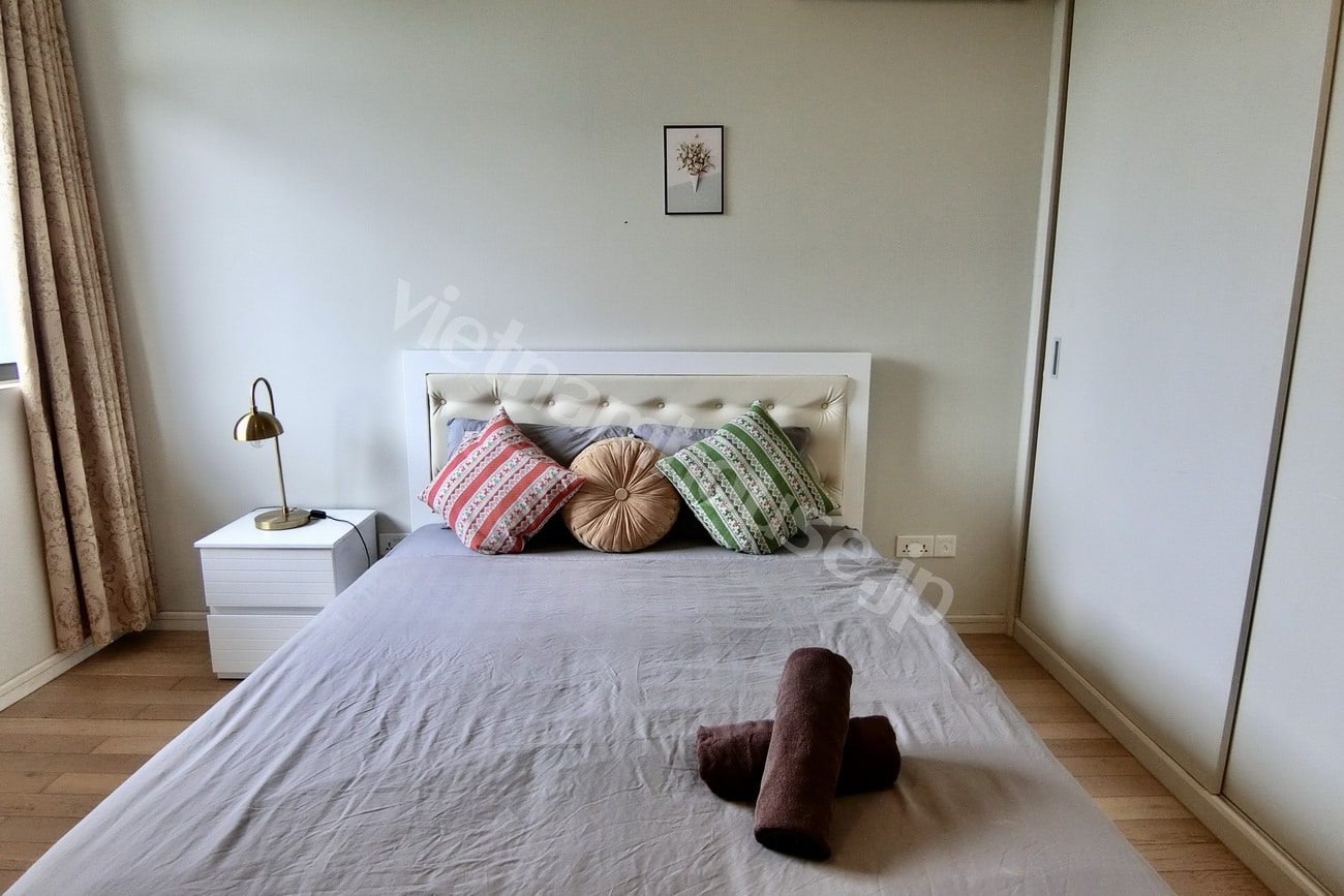 Phòng ngủ chính mang lại cảm giác thư giãn tuyệt đối với thiết kế tối giản nhưng không kém phần tinh tế. Giường lớn, tủ đồ rộng rãi và cửa sổ hướng sáng tự nhiên giúp không gian luôn thông thoáng và dễ chịu. Dù là cuối tuần hay mỗi buổi sáng thức dậy, bạn đều có thể tận hưởng không khí trong lành và ánh nắng sớm len lỏi vào phòng.