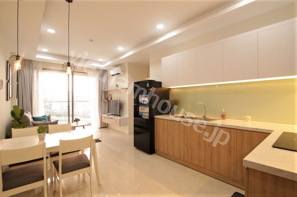 Căn hộ được thiết kế với phong cách mở, giúp kết nối không gian phòng khách và bếp một cách hài hòa. Ban công rộng thoáng, hướng nhìn đẹp, phù hợp để thư giãn hoặc tận hưởng khoảnh khắc bình yên sau ngày dài làm việc. Phòng bếp hiện đại, trang bị tủ lưu trữ thông minh, mặt bàn đá sang trọng cùng thiết bị bằng thép không gỉ, đảm bảo sự bền bỉ và tiện dụng.