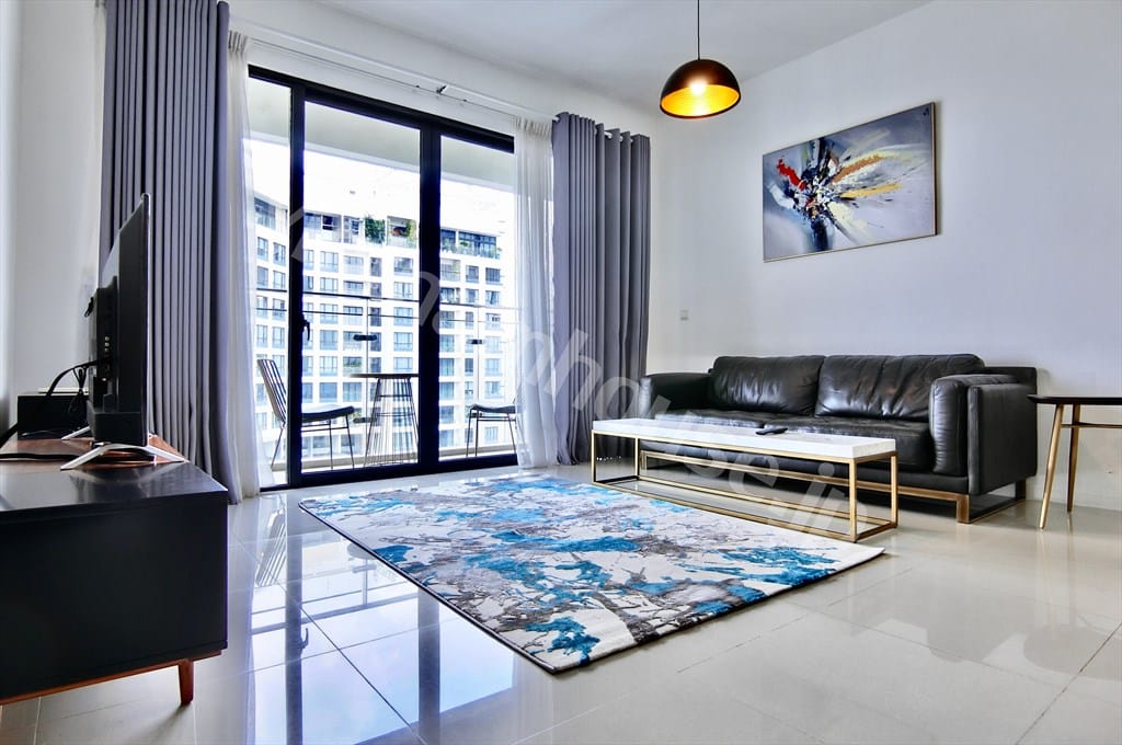 Không gian sinh hoạt chung có thiết kế mở, kết nối tự nhiên giữa phòng khách và khu vực ăn uống. Toàn bộ khu vực lát gạch sang trọng, cửa trượt lớn mở ra ban công riêng – nơi bạn có thể tận hưởng ánh sáng tự nhiên và không khí trong lành.