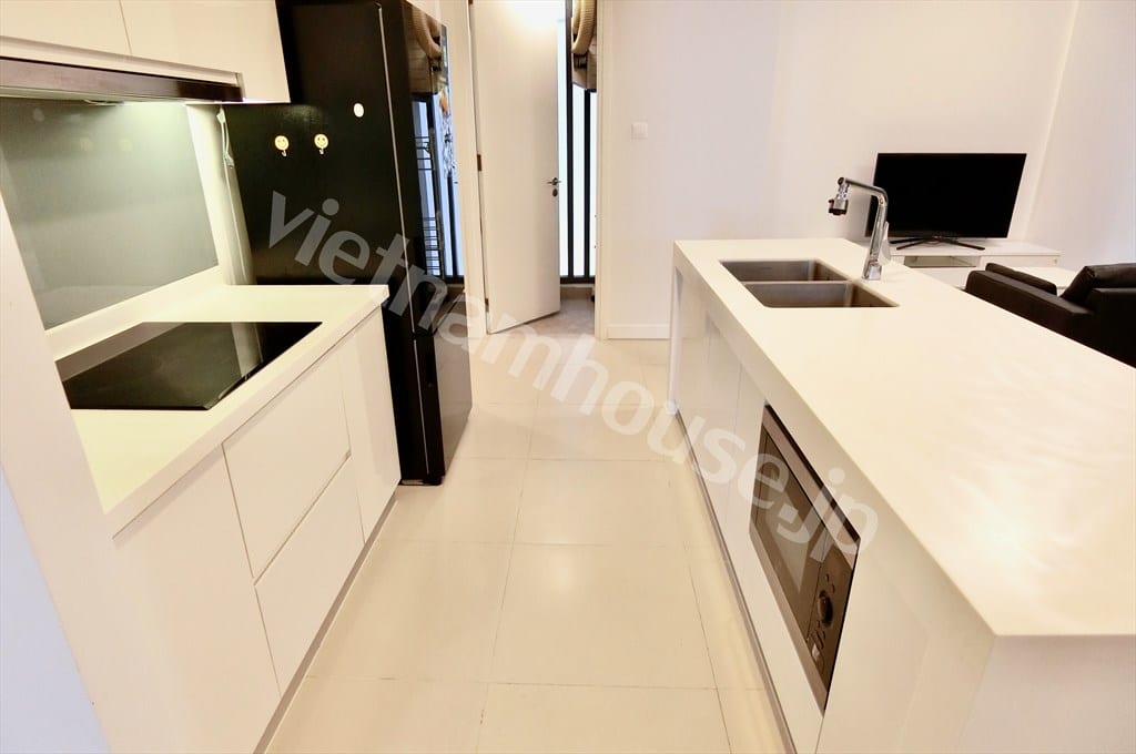 Không gian sinh hoạt được thiết kế mở, rộng rãi và ngập tràn ánh sáng tự nhiên. Khu vực bếp được trang bị các thiết bị chất lượng – từ bếp điện cho đến hệ tủ lưu trữ rộng, phù hợp cho những ai yêu thích nấu ăn tại nhà. Ban công rộng hướng gió, lý tưởng để thư giãn sau giờ làm việc.