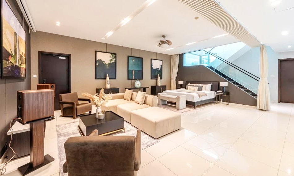 Căn hộ penthouse 6 phòng ngủ tại The Vista An Phú cho thuê, không gian rộng 500 m², thiết kế sang trọng, có sân vườn và tầm nhìn hướng sông thoáng mát. Căn hộ được trang bị đầy đủ nội thất cao cấp, sẵn sàng dọn vào ở.