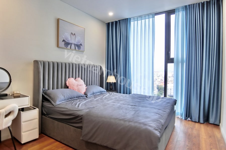 Cả hai phòng ngủ đều có thiết kế mở đón ánh sáng, mang lại cảm giác dễ chịu, thoải mái cho người ở. Một trong hai phòng được tích hợp ban công riêng, rất lý tưởng để tận hưởng không khí trong lành buổi sáng. Phòng tắm có bồn tắm, một điểm cộng hiếm gặp trong các căn hộ cùng phân khúc, giúp bạn dễ dàng thư giãn sau ngày dài.