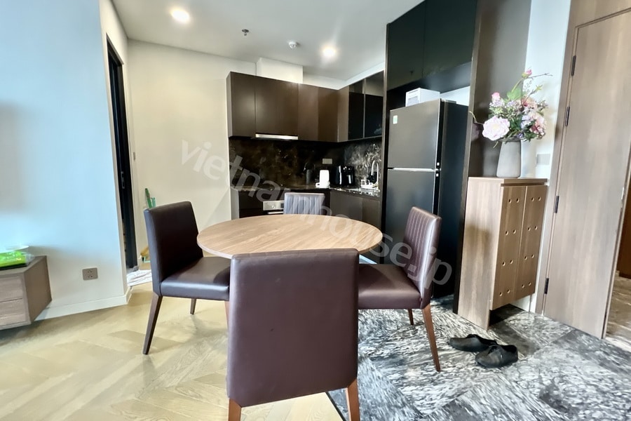 Nội thất căn hộ được hoàn thiện theo phong cách tối giản nhưng vẫn sang trọng. Màu sắc trung tính, ánh sáng tự nhiên và cách bố trí thông minh giúp không gian trở nên thoáng đãng, dễ chịu. Từng chi tiết trong căn hộ đều được lựa chọn kỹ lưỡng để phục vụ cuộc sống hiện đại: từ sofa êm ái, giường ngủ chất lượng cao, đến bếp ăn gọn gàng và phòng tắm sạch sẽ.