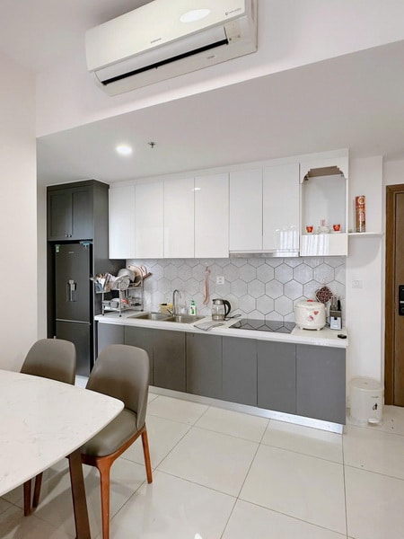 Điểm mạnh của căn hộ là sự đồng bộ trong thiết kế nội thất, giúp không gian gọn gàng và dễ sử dụng. Người thuê chỉ cần mang theo đồ cá nhân là có thể bắt đầu sinh hoạt ngay.