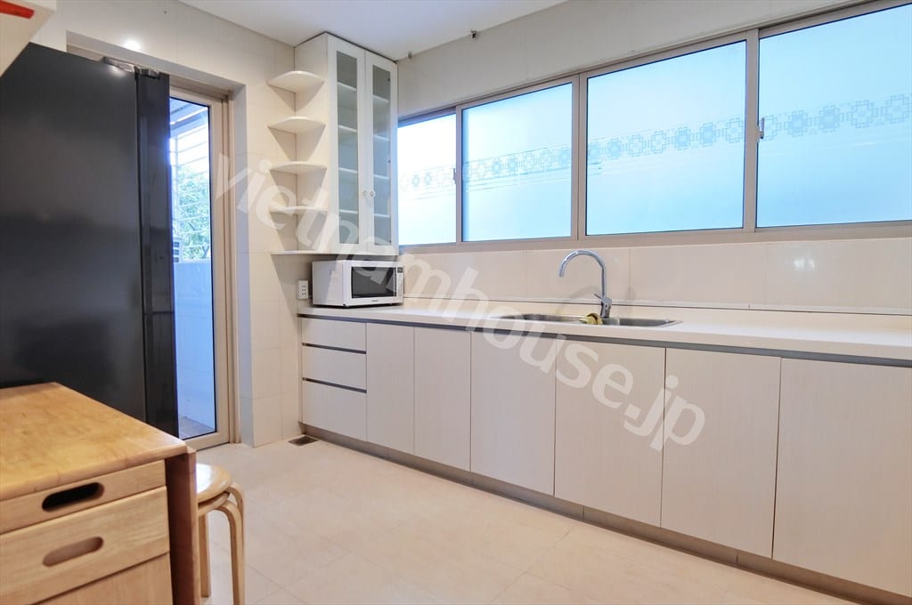 - Gian bếp hiện đại, sử dụng thiết bị inox cao cấp, nhiều ngăn lưu trữ – rất phù hợp với các gia đình thích nấu ăn tại nhà.