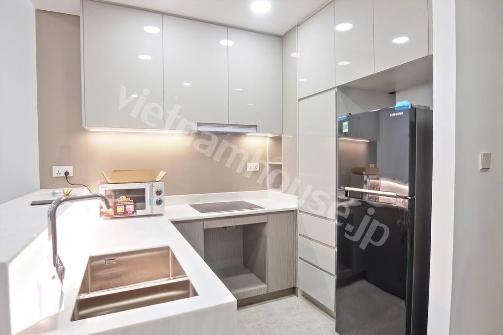 Không gian sinh hoạt thoáng đãng với nhiều ánh sáng tự nhiên, kết hợp cùng nhà bếp hiện đại – phù hợp cho cả những ai yêu nấu nướng lẫn người bận rộn cần sự tiện lợi. Ban công riêng mở ra góc nhìn thành phố, là nơi lý tưởng để bạn thư giãn sau giờ làm.