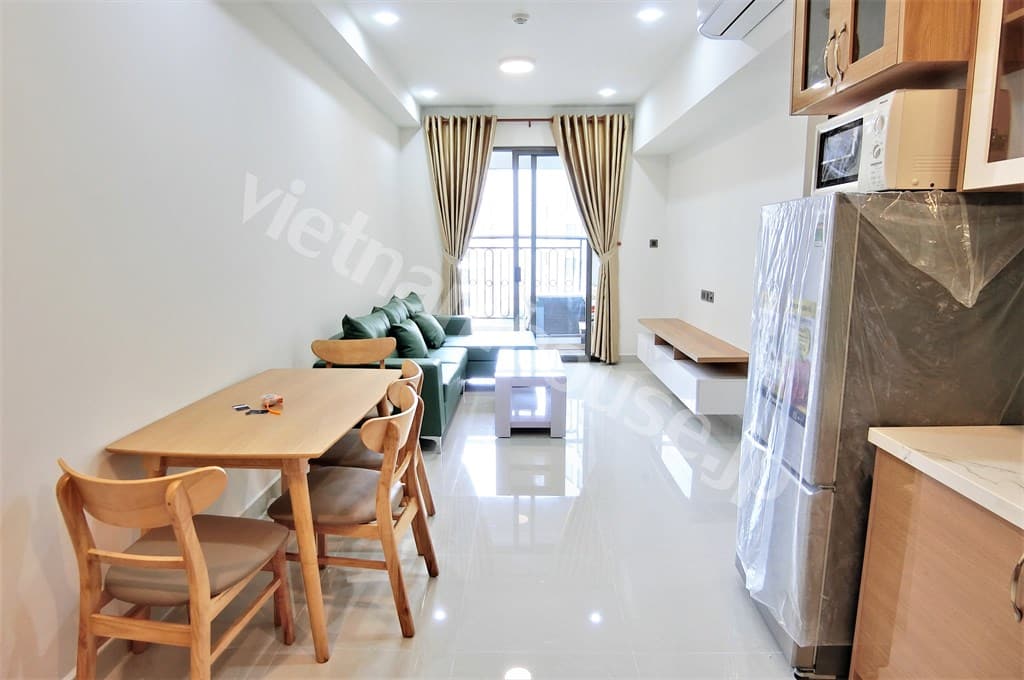 Căn hộ được thiết kế hiện đại, không gian tối ưu với phòng khách thoáng rộng nối liền ban công riêng, mang đến tầm nhìn thoáng đãng. Nội thất cao cấp, bố trí hài hòa, tạo cảm giác ấm cúng và tiện nghi.