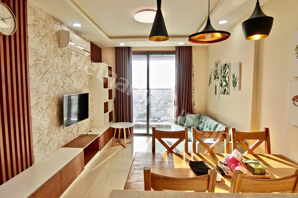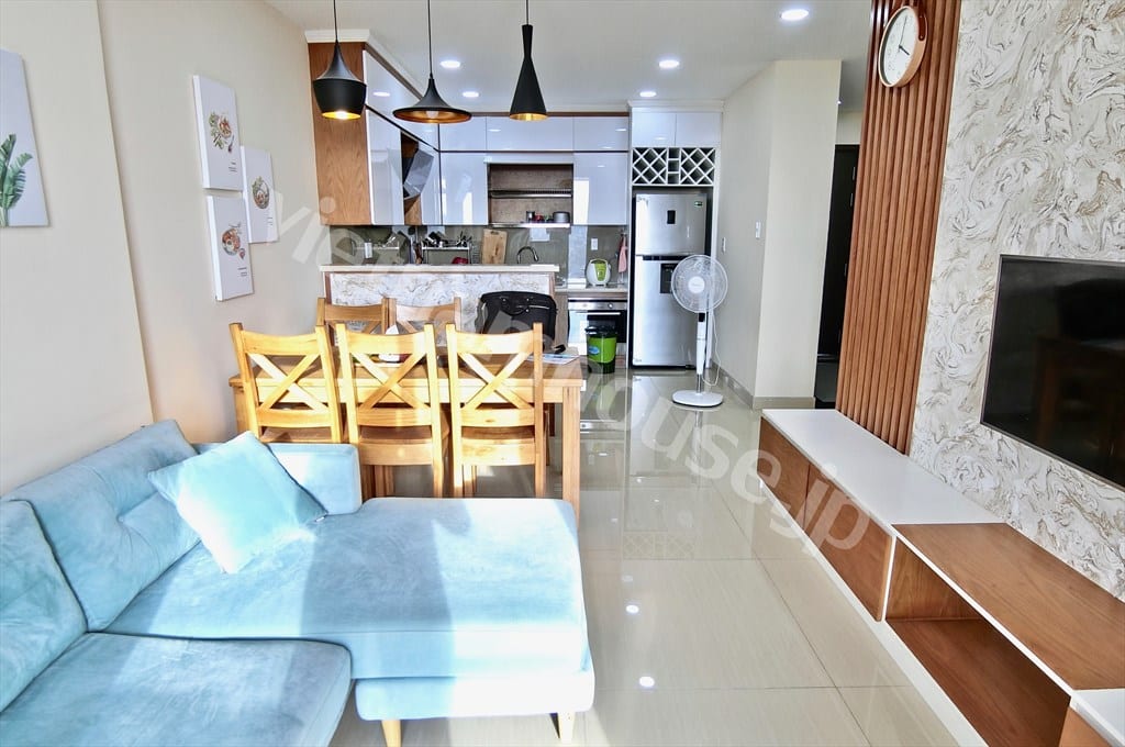 - Bố trí: 2 phòng ngủ, 2 phòng tắm, phù hợp cho gia đình nhỏ hoặc người đi làm cần sự riêng tư