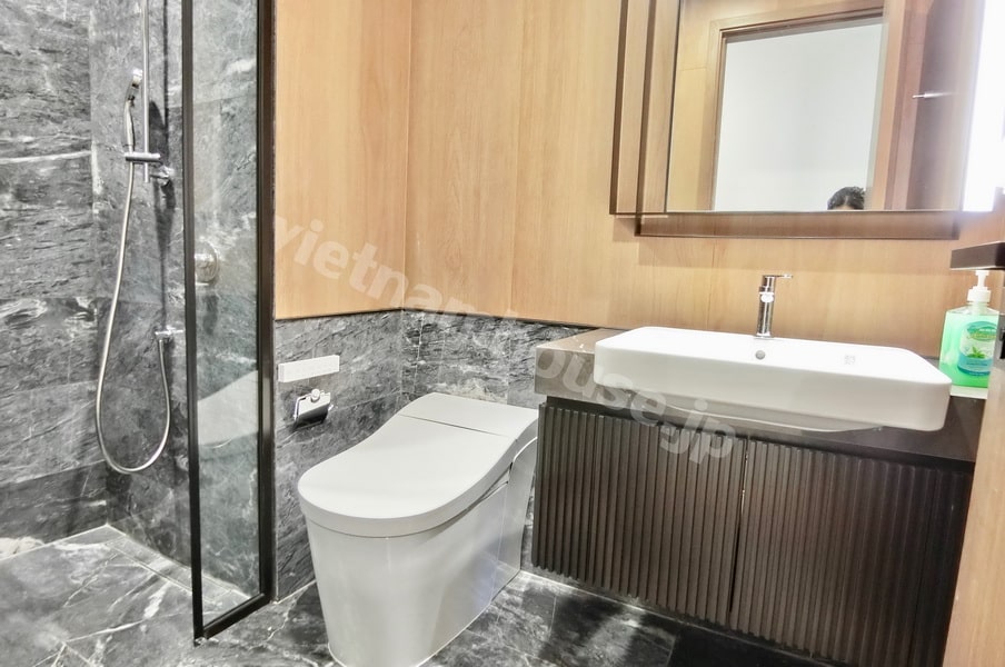 Một điểm đáng chú ý là nhà vệ sinh được lắp đặt sẵn bệ rửa thông minh – chi tiết nhỏ nhưng tạo ra khác biệt lớn về sự thoải mái trong trải nghiệm sống.