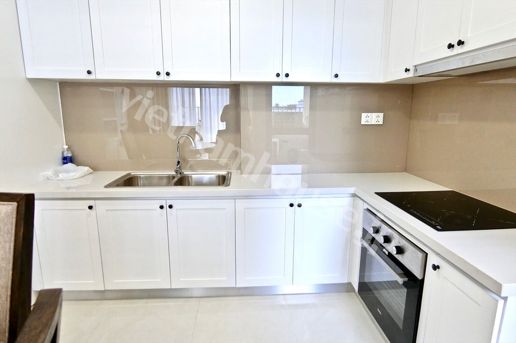 Căn hộ được hoàn thiện bằng nội thất nhập khẩu từ châu Âu, mang đến trải nghiệm sống tinh tế và chất lượng. Không gian bếp hiện đại, bố trí hợp lý với nhiều tủ lưu trữ, liền mạch với phòng khách và khu vực ăn uống – rất lý tưởng cho gia đình nhỏ hoặc cặp đôi yêu thích sự tiện nghi và ấm cúng.