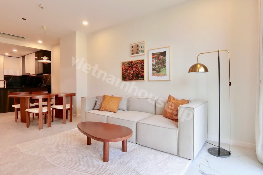 Căn hộ sở hữu không gian sống rộng rãi, thiết kế theo phong cách tối giản với tông màu trung tính mang lại cảm giác ấm cúng và dễ chịu. Mỗi phòng đều được bố trí hợp lý, tận dụng tối đa ánh sáng tự nhiên, phù hợp cho gia đình trẻ hoặc chuyên gia nước ngoài tìm nơi an cư chất lượng tại Thủ Thiêm.