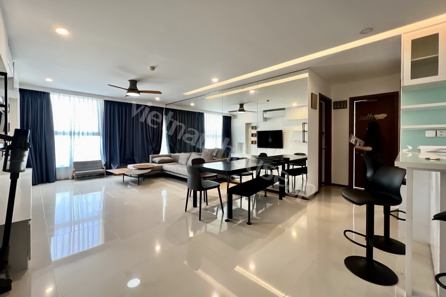 Nằm ngay dưới chân cầu Sài Gòn, căn hộ 3 phòng ngủ tại Thảo Điền Pearl mang đến trải nghiệm sống lý tưởng cho gia đình hiện đại. Căn hộ được thiết kế thông minh, tận dụng tối đa ánh sáng tự nhiên với nhiều ô cửa sổ rộng và hai ban công thoáng đãng hướng ra sông Sài Gòn và toà Landmark 81 – tầm nhìn không giới hạn mỗi ngày.