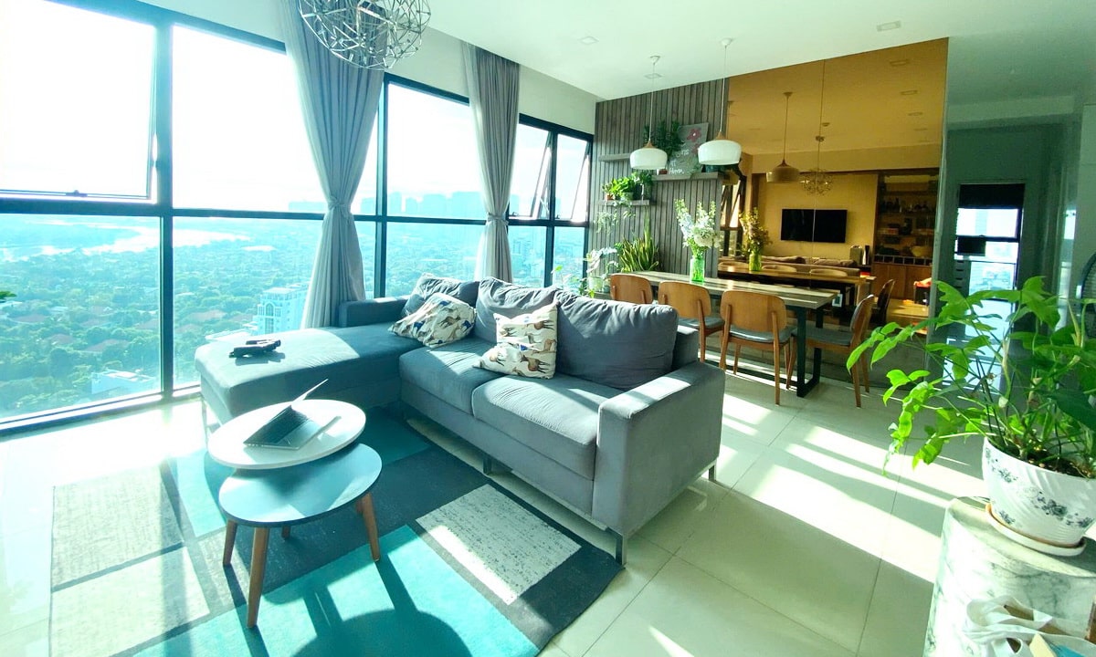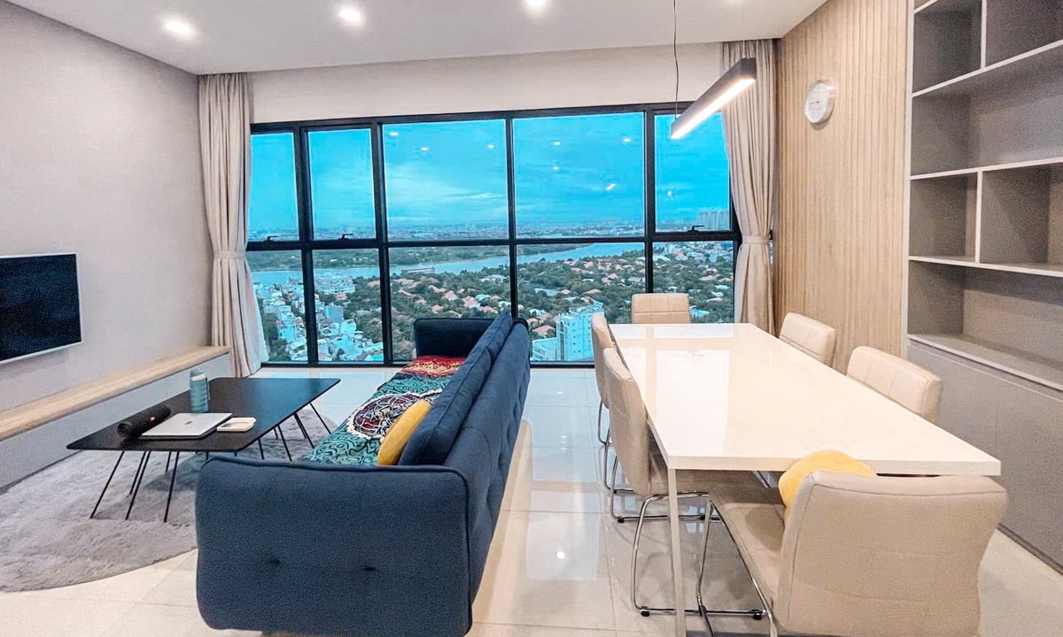 Căn hộ nằm tầng cao, hướng sông Sài Gòn, tầm nhìn mở, không bị che chắn. Không gian luôn thoáng gió, nhiều ánh sáng tự nhiên, tạo cảm giác dễ chịu khi ở lâu dài.