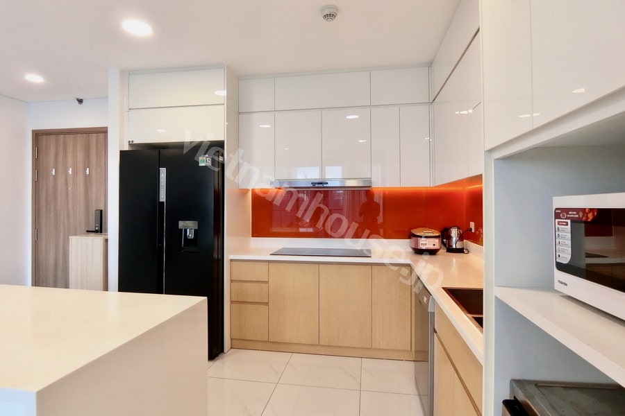 Căn hộ thuộc toà Silver House – Sunwah Pearl, nổi bật với không gian rộng thoáng, nội thất cao cấp và thiết kế chuẩn gu người thành thị. Hai phòng ngủ được bố trí hợp lý, trong đó phòng ngủ chính có phòng tắm riêng, đảm bảo sự riêng tư cần thiết. Khu bếp được trang bị đầy đủ thiết bị bằng thép không gỉ, kết nối với khu vực bàn ăn và phòng khách mở rộng – tạo cảm giác ấm cúng và tiện nghi cho sinh hoạt hàng ngày.