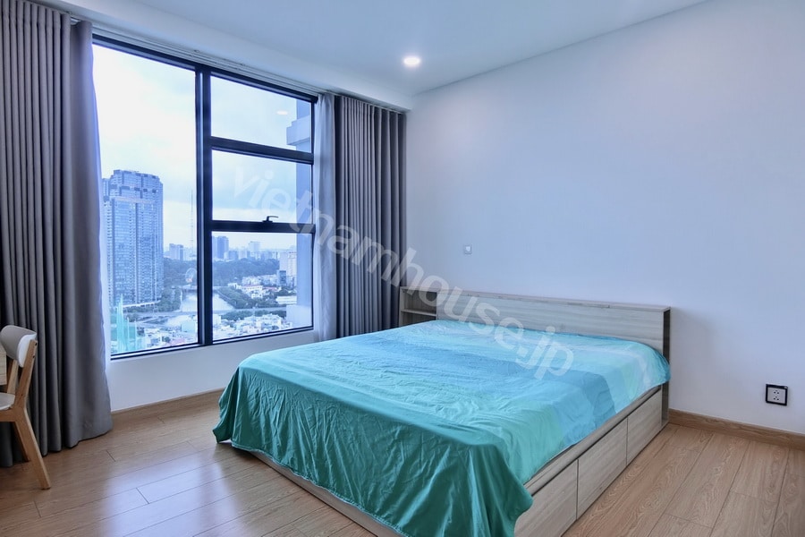 Ban công riêng hướng về trung tâm thành phố, nơi bạn có thể nhìn thấy Bitexco rực sáng về đêm – một điểm nhấn tinh tế trong trải nghiệm sống tại đây.