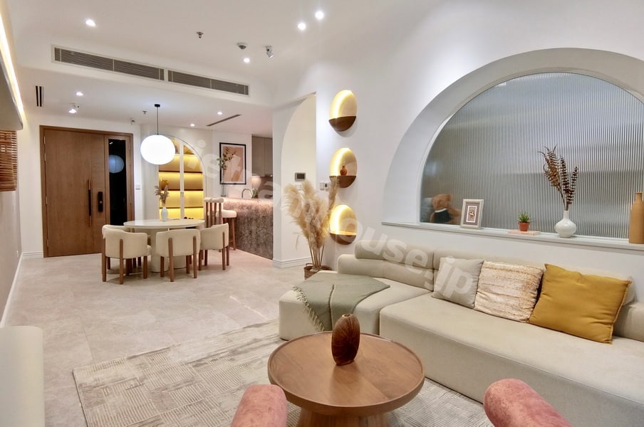 Không chỉ sở hữu không gian rộng rãi và công năng bố trí hợp lý, điểm cộng lớn nhất của căn hộ nằm ở thiết kế mang hơi thở hiện đại pha chút dễ thương – đủ để tạo nên một không gian sống vừa có gu, vừa gợi cảm hứng mỗi ngày. Từng đường nét nội thất đều được chăm chút kỹ lưỡng, toát lên sự thanh lịch và ấm cúng, phù hợp cho những ai yêu thích sự tinh tế nhưng vẫn muốn giữ lại dấu ấn cá nhân trong nơi ở của mình.