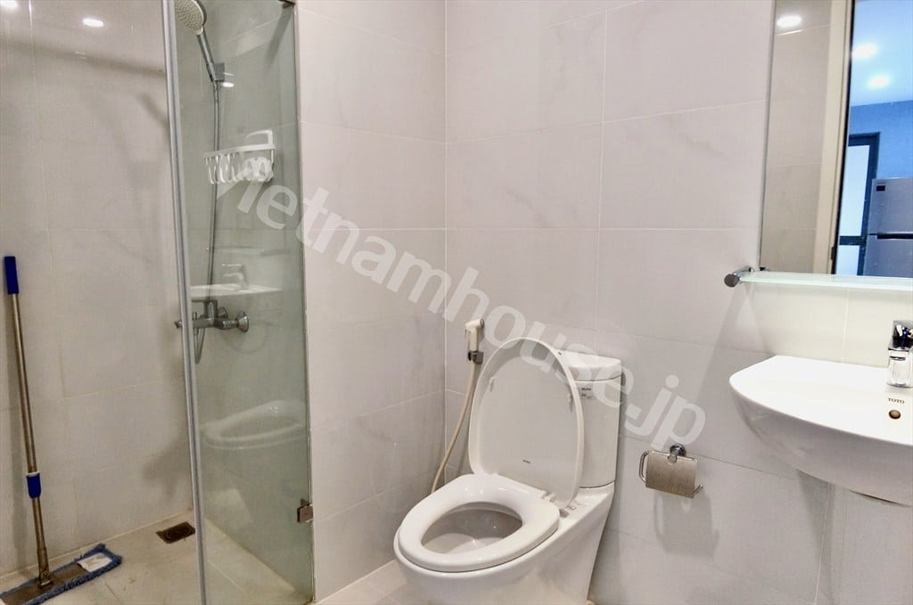 Phòng ngủ rộng rãi có sẵn tủ âm tường, phòng tắm khép kín với khu vực tắm riêng biệt. Ban công nhìn ra khu dân cư Thảo Điền, vừa thoáng đãng vừa yên tĩnh.