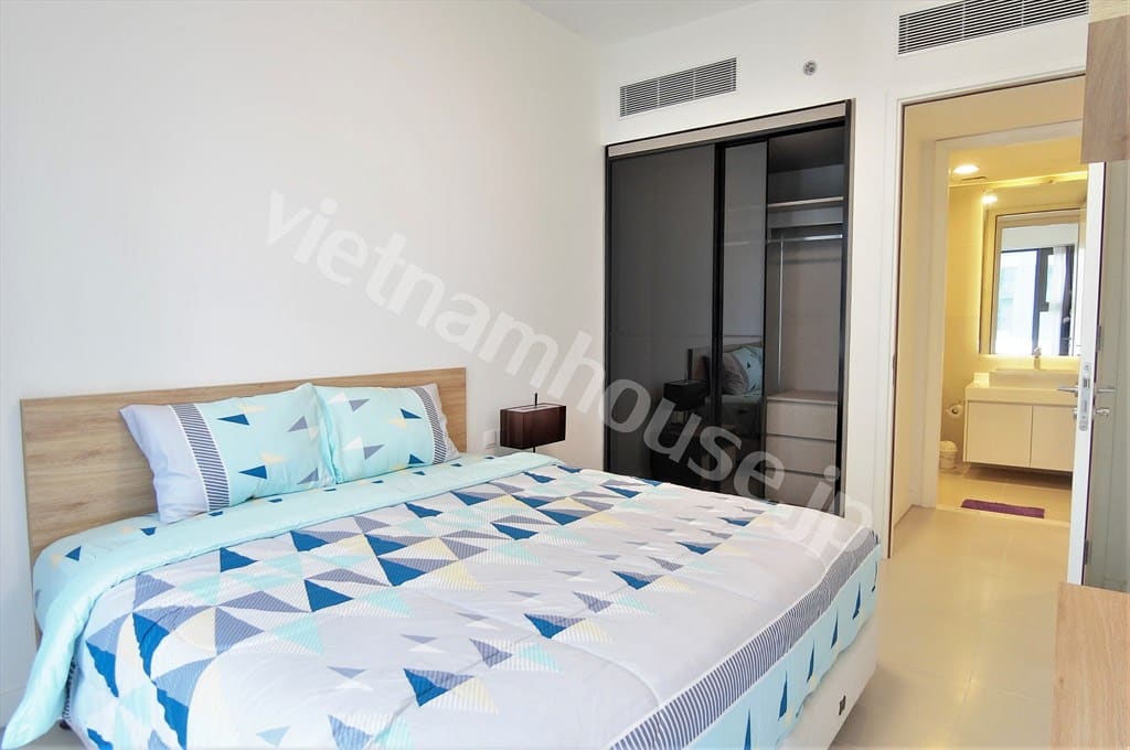 Căn hộ được hoàn thiện theo tiêu chuẩn cao, với phong cách nội thất hiện đại, không gian sống gọn gàng và tinh tế. Phòng ngủ yên tĩnh, có cửa sổ lớn đón ánh sáng tự nhiên. Phòng tắm được thiết kế tối giản nhưng đầy đủ tiện nghi.