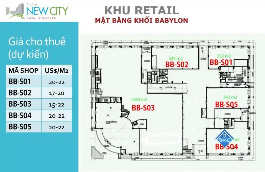 Giá cho thuê Shophouse New City Tòa Babylon