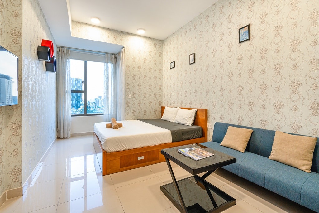 - Bố cục: 1 phòng ngủ, 1 phòng tắm, thích hợp cho cá nhân hoặc cặp đôi.