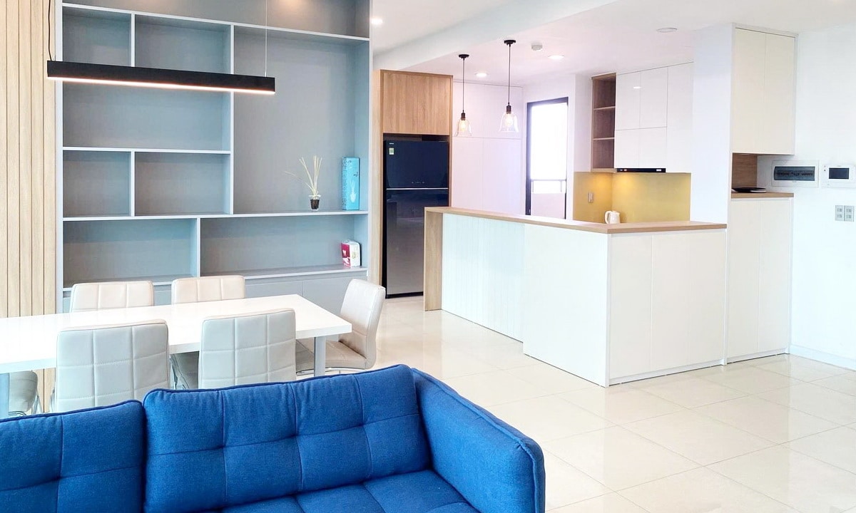Nội thất full, phong cách lịch lãm, đơn giản nhưng tinh tế. Trang bị đầy đủ từ sofa, bàn ăn đến hệ tủ bếp, giúp người thuê tiết kiệm thời gian và chi phí hoàn thiện.