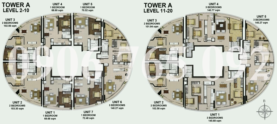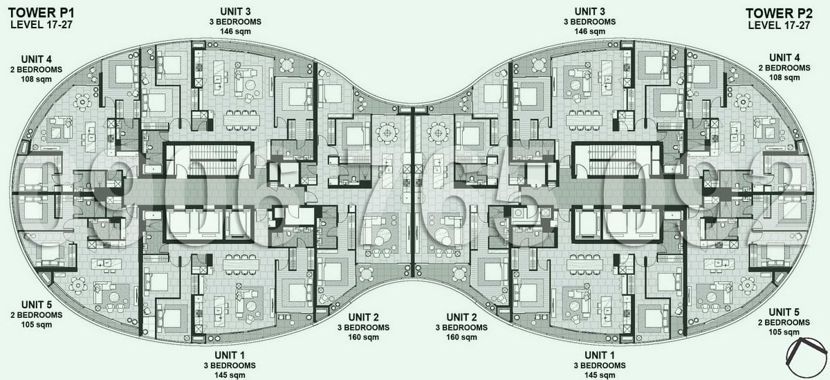 - Căn hộ Penthouse diện tích 208m2 – 341m2.