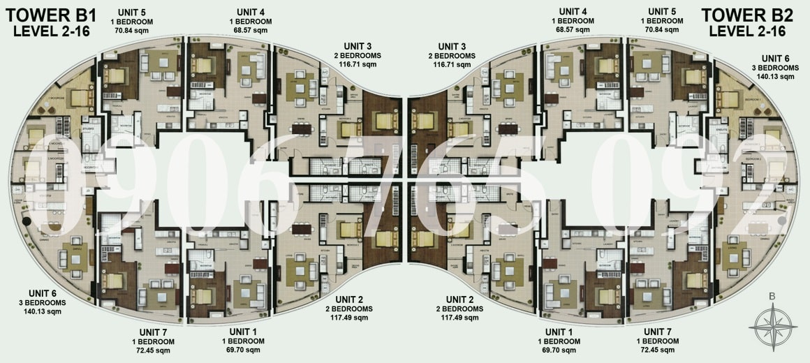 - Căn hộ 2 phòng ngủ diện tích 103m2 – 117m2.