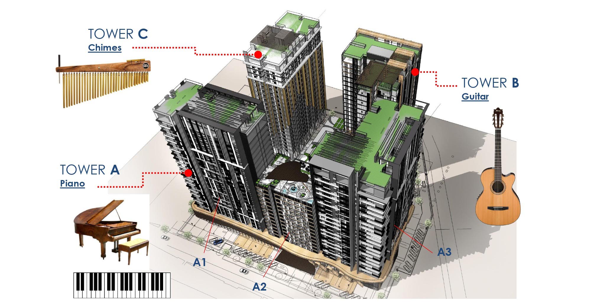 Dự án gồm 3 tòa tháp mang tên Alto, Cello và Bass (tương ứng tháp A – B – C), cung cấp ra thị trường khoảng 870 căn hộ cao cấp, kết hợp các khối thương mại – dịch vụ, văn phòng, shophouse và officetel, hình thành một khu phức hợp sống – làm việc hiện đại ngay trung tâm quận 4.