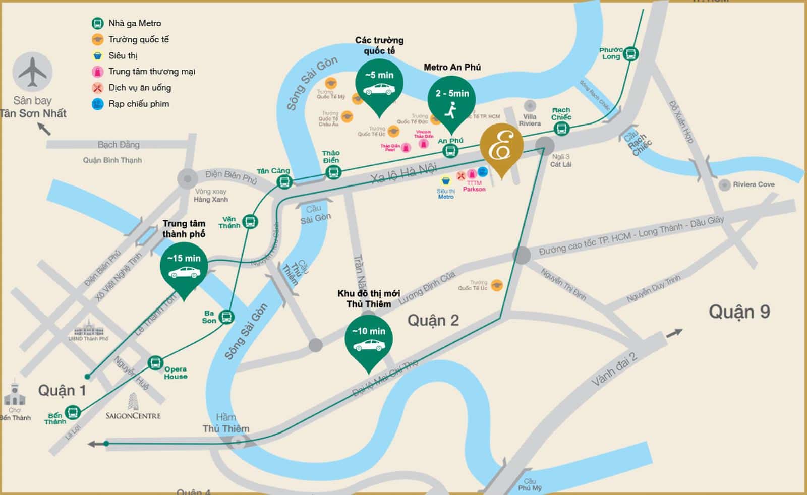 Nhờ sở hữu vị trí chiến lược, Estella Heights được đánh giá cao về khả năng kết nối và tiềm năng gia tăng giá trị. Từ dự án, cư dân có thể nhanh chóng tiếp cận nhiều khu vực trọng điểm của thành phố: