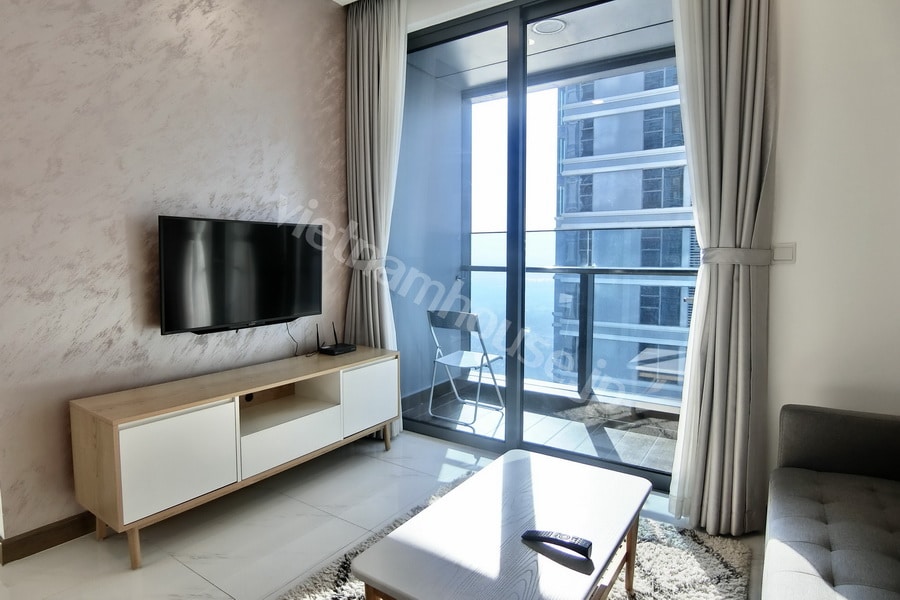 Tọa lạc trên tầng cao của tòa nhà Sunwah Pearl, căn hộ 1 phòng ngủ này mang đến cảm giác rộng rãi hơn nhờ cách bố trí thông minh giữa khu vực sinh hoạt và ăn uống. Ban công hướng gió mát, mở ra một khoảng trời riêng tư – lý tưởng cho những phút thư giãn sau giờ làm việc.