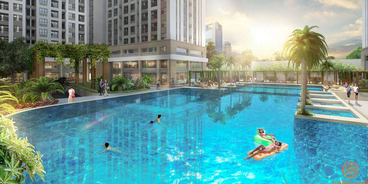 - Hồ bơi tràn bờ quy mô lớn đặt tại lõi trung tâm dự án, thiết kế riêng khu vực cho người lớn và trẻ em, tầm nhìn rộng và thoáng.