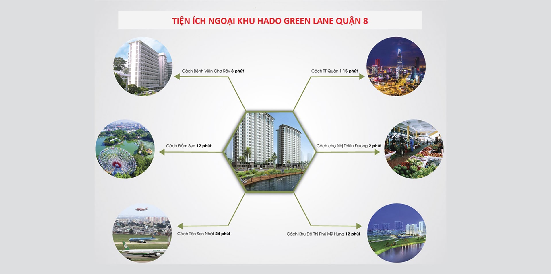 Hado Green Lane là dự án căn hộ Quận 8 do Tập đoàn Hà Đô đầu tư và phát triển, tọa lạc tại mặt tiền đường Phạm Thế Hiển – trục giao thông quan trọng của khu Tây Nam TP.HCM. Dự án sở hữu lợi thế hiếm có khi bao quanh bởi hệ thống sông nước tự nhiên, tạo địa thế phong thủy hài hòa, được đánh giá cao về khả năng thu hút vượng khí và giá trị sinh tài lâu dài.