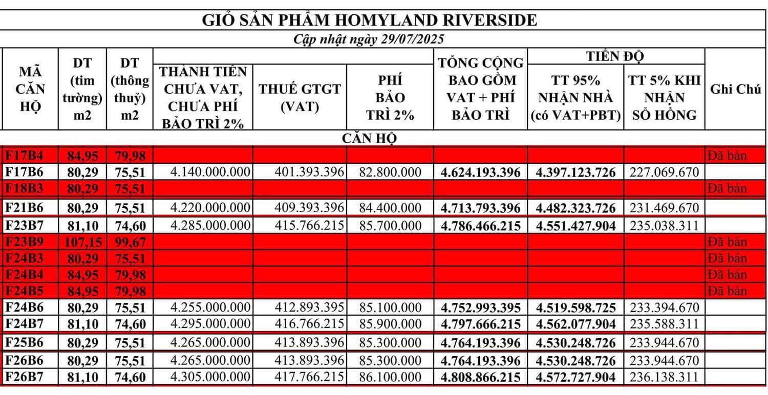 Giá bán căn hộ Homyland Riverside – Cập nhật mới nhất 01/2026
