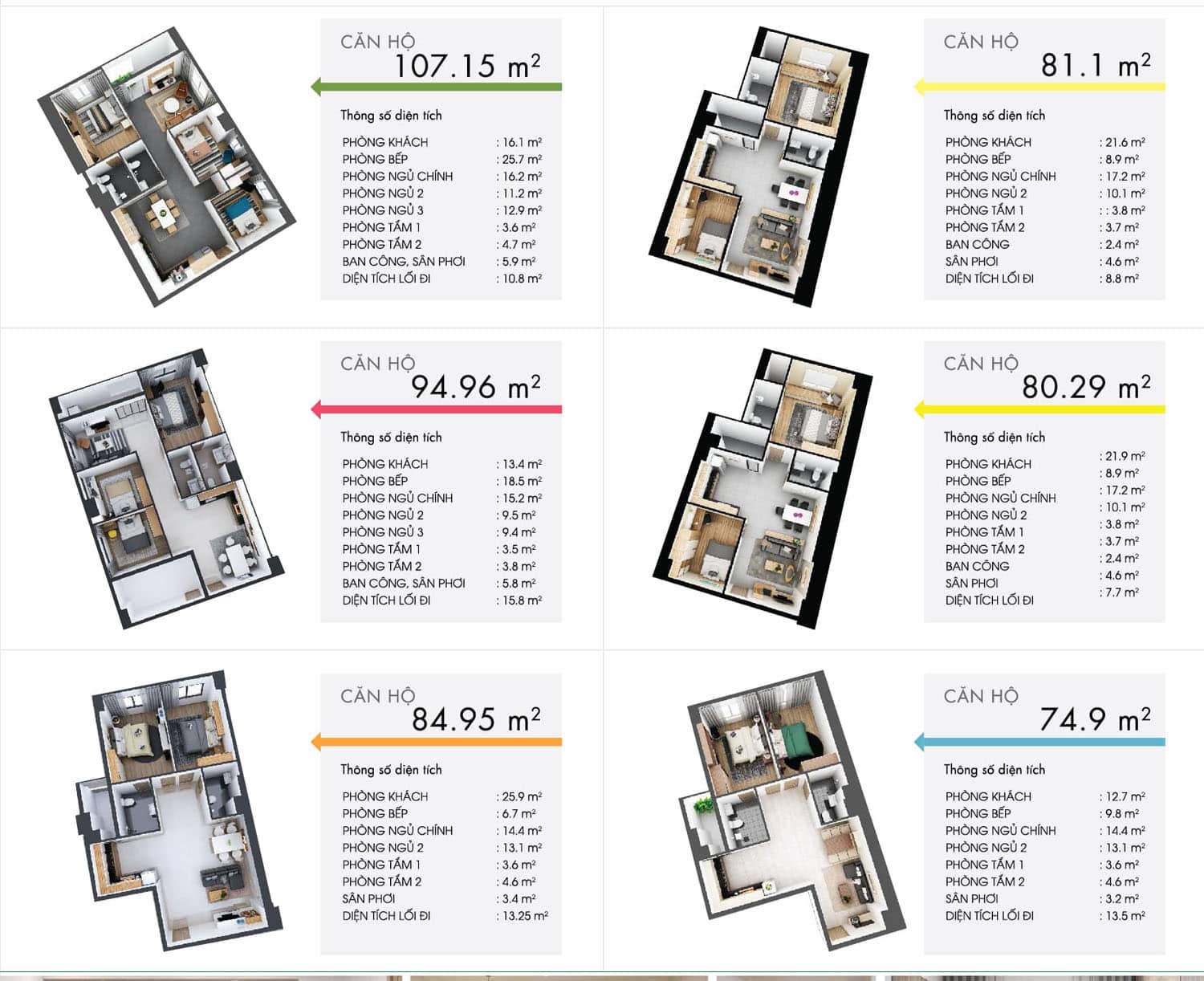 - Diện tích căn hộ 3 phòng ngủ Homyland Riverside cho thuê: 95 – 107m²