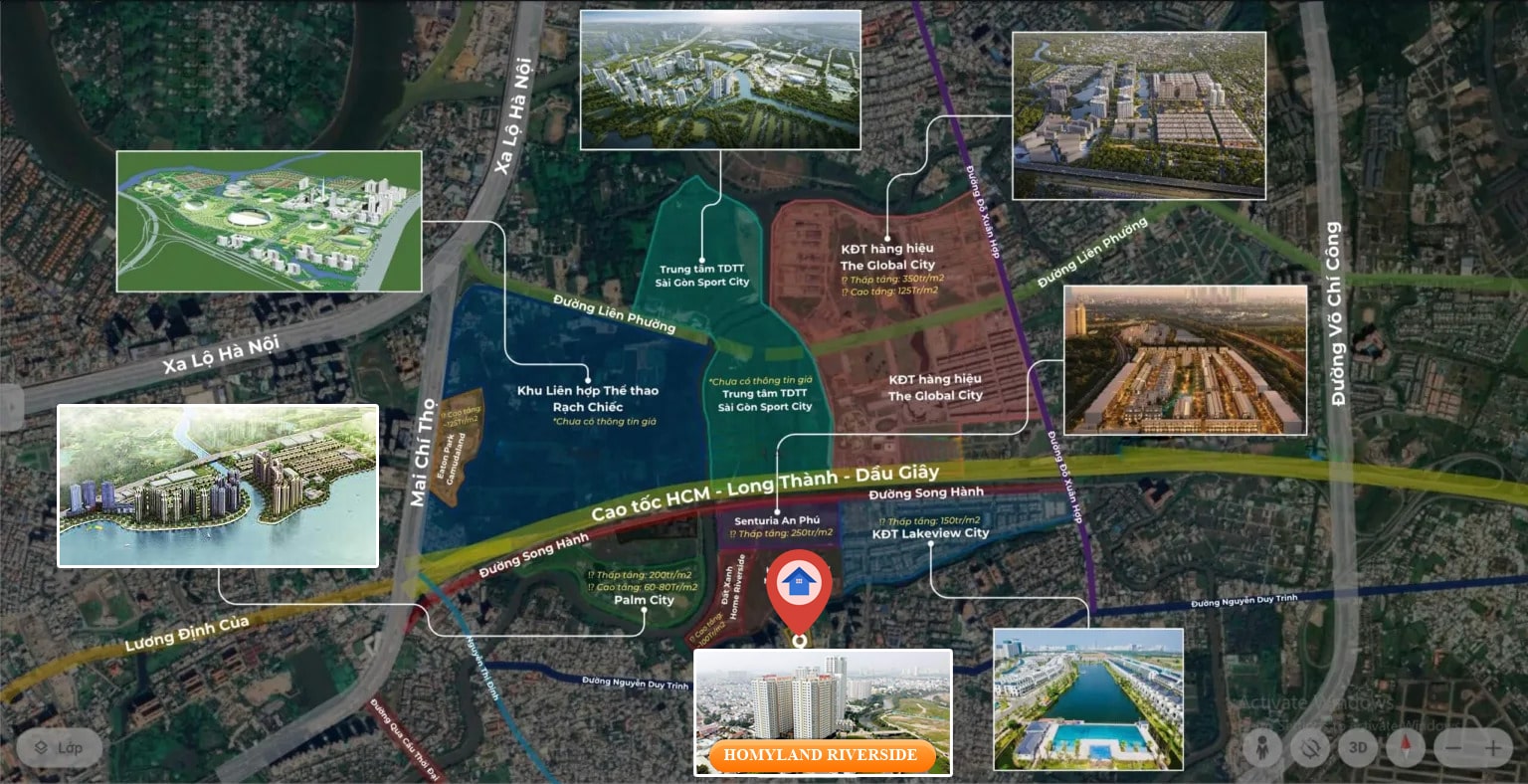 Ngoài ra, Homyland Riverside còn nằm gần nhiều dự án căn hộ nổi bật như Kris Vue, The Prive Đất Xanh, La Astoria,… tạo cộng đồng dân cư sầm uất và tiện nghi.