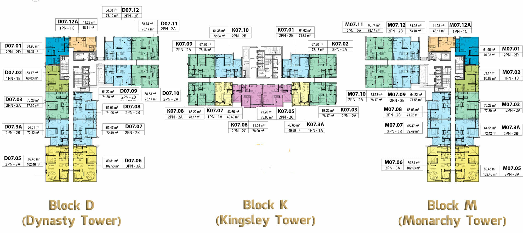 | 2PN | 70m² – 73m² | 16,5 triệu/tháng | 6,9 tỷ |