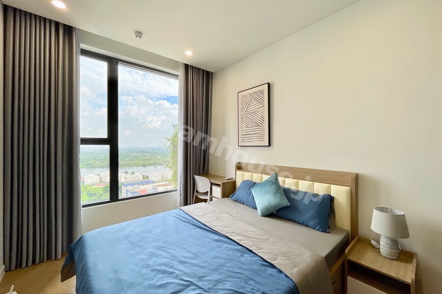 Từng món nội thất trong căn hộ đều được chọn lọc kỹ lưỡng, phối màu hài hòa và bố trí hợp lý. Không gian phòng khách và phòng ngủ đón sáng tự nhiên tốt, ban công mở rộng là điểm nhấn giúp bạn tận hưởng trọn vẹn không khí trong lành và góc nhìn thư giãn mỗi ngày.
