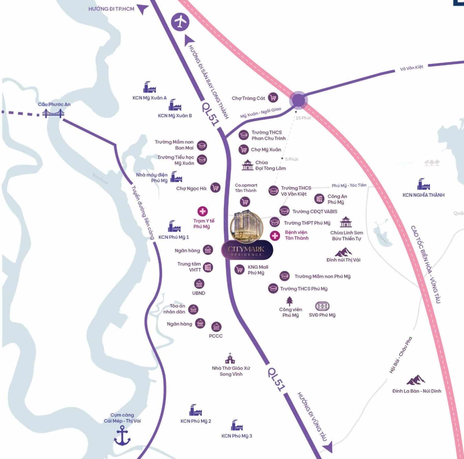 Dự án tọa lạc tại mặt tiền Quốc lộ 51, phường Phú Mỹ, Tp.Hồ Chí Minh, với vị trí chiến lược gần cụm cảng Cái Mép – Thị Vải.