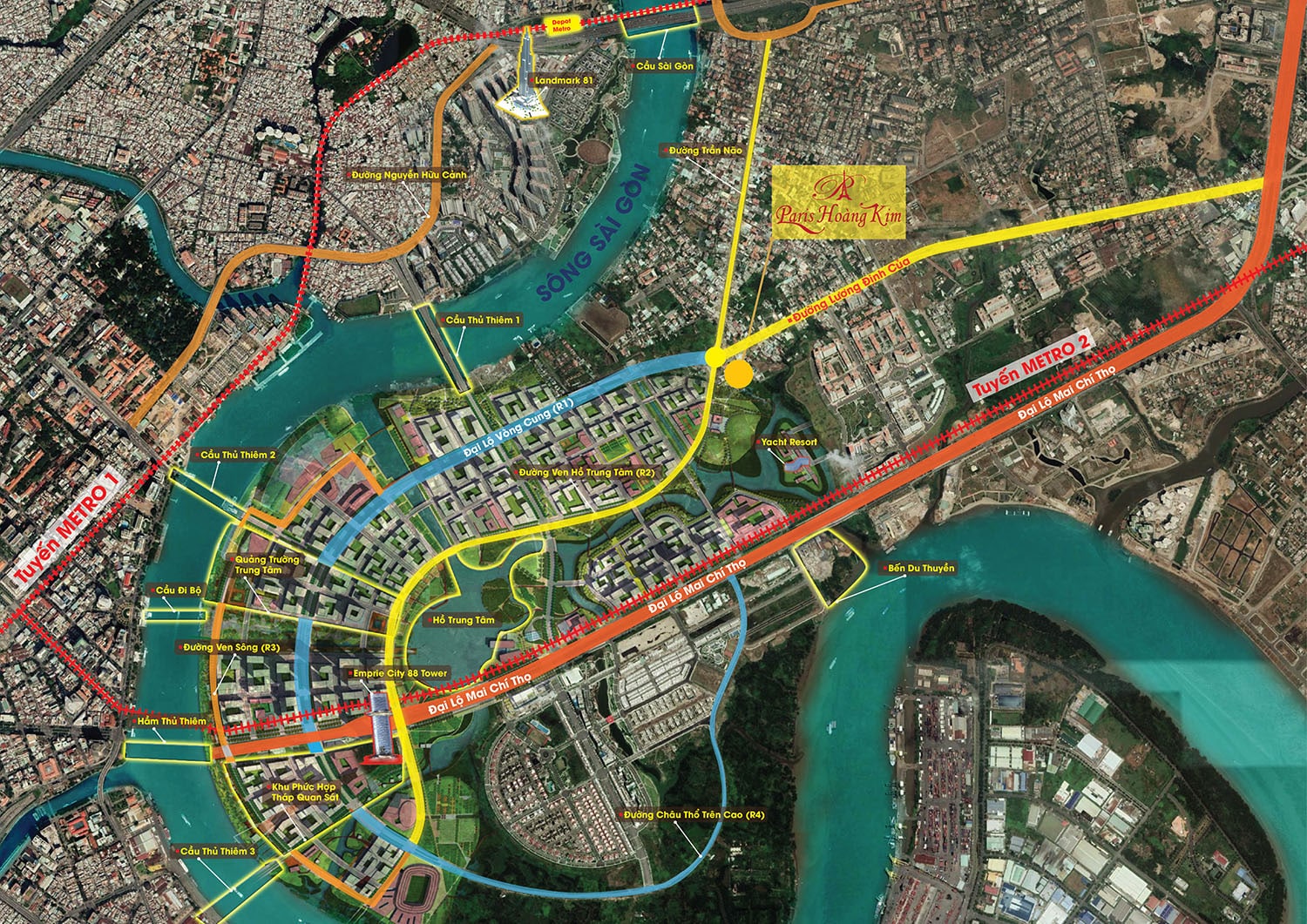 Paris Hoàng Kim tọa lạc tại số 25/25 Lương Định Của, phường Bình Khánh, TP. Thủ Đức (Quận 2 cũ), liền kề khu đô thị Thủ Thiêm.